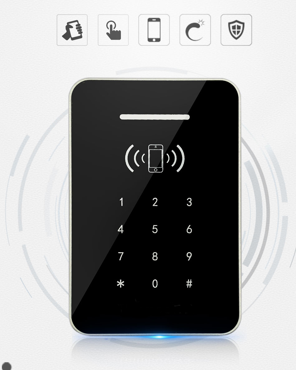 手机蓝牙门禁读头手机蓝牙门禁读头是我公司生产设计的,集密码开门、刷卡开门、刷手机开门于一体的新一代智能读头。目前为业界领先的物联网智能读头!用普通读头的价格,给您新一代读头的体验! 简洁时尚的外观设计 外形设计新颖简介,表面采用亚克力材质,按键采用全触摸式。灵敏、稳定、安全。 支持刷卡、密码、刷手机开门方式,目前为业界最领先!具有稳定性高、反应快、功能强、操作简单的特点,且寿命长,用户不再有反应慢,读取失误的烦恼,可适用于各种场所:高档会所,酒店,企业,别墅等等。
