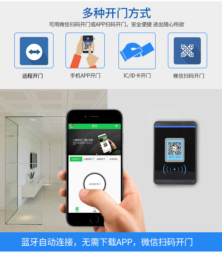 GPRS款机器为门禁主机里边内置手机SIM卡,通过手机流量进行传输数据,扫码开门远程开门等